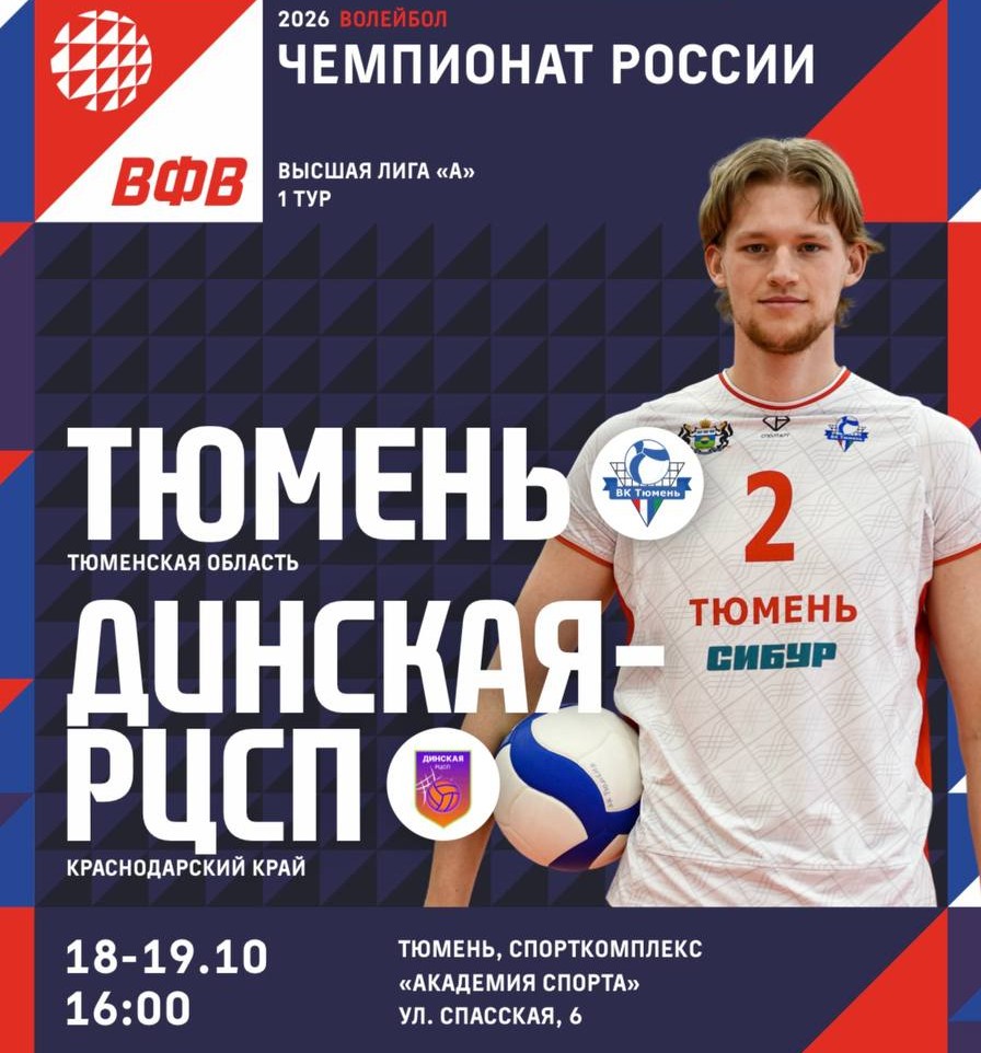 В первом туре тюменцы выступят экзаменатором для команды «Динская-РЦСП». Краснодарцы — дебютанты второго по силе отечественного дивизиона