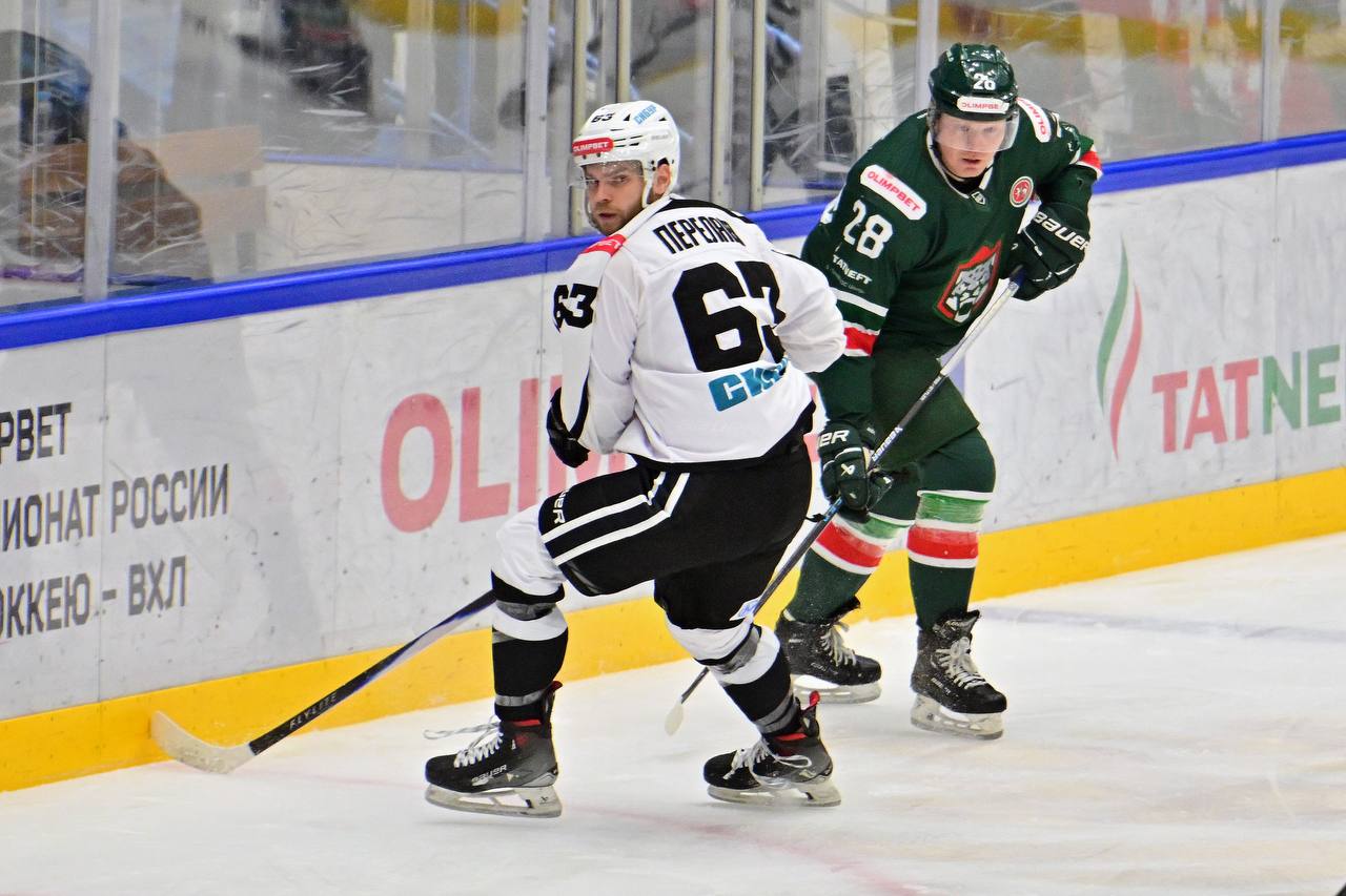Тюменский «Рубин» в рамках чемпионата Всероссийской хоккейной лиги в Казани встречался с «Барсом» — 1:2..