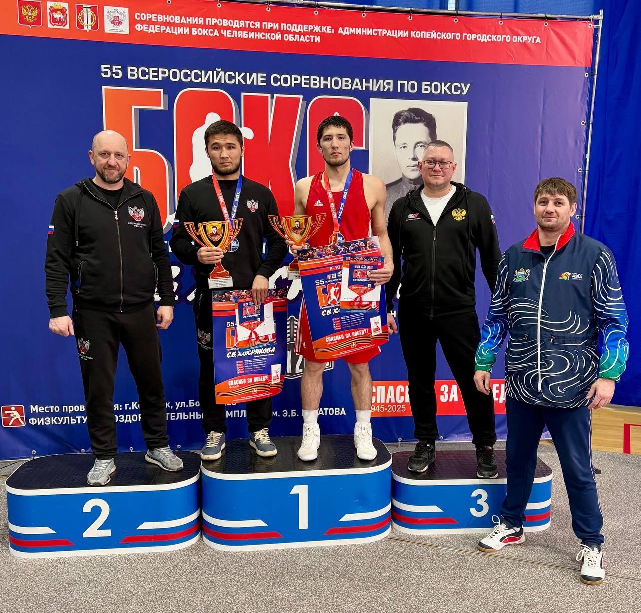 Боксёров тренируют Павел Корсаков, Леонид Абрамов, Александр Паули и Ломали Хатаев.