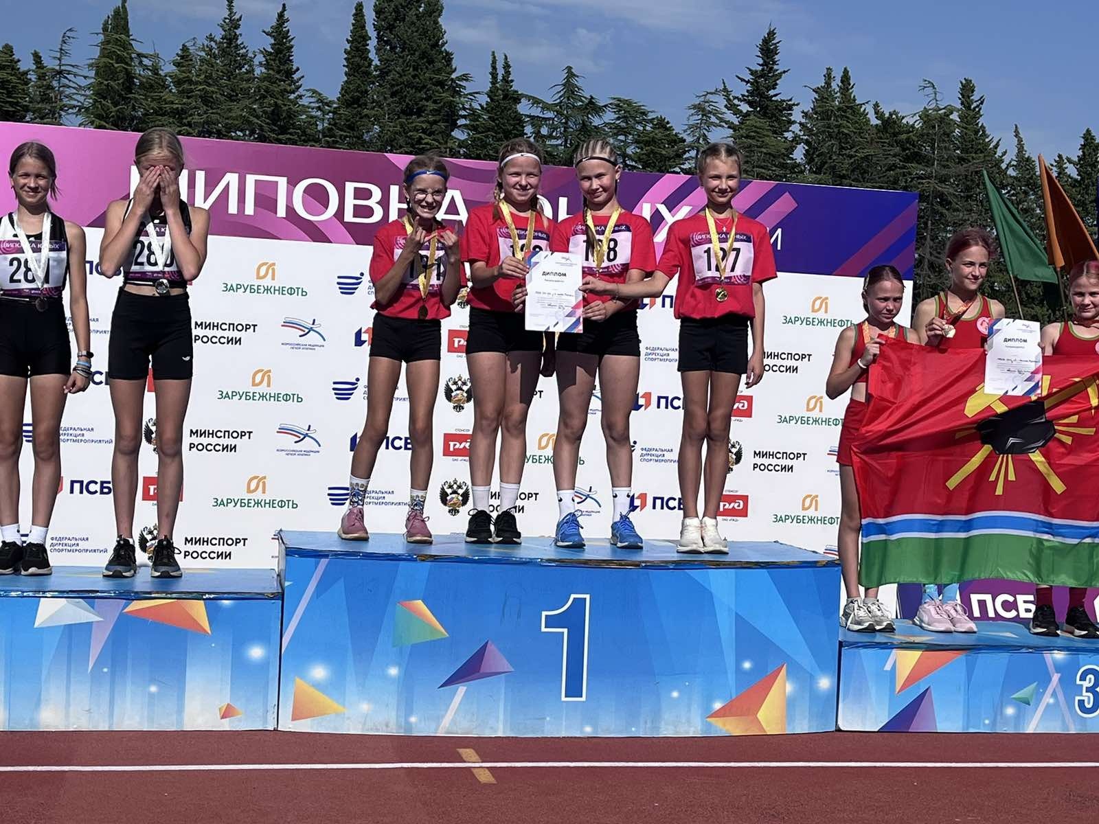 Они показали лучший результат в эстафете «4 по 100» метров среди девушек. «Озолотился» квартет в составе Анны Панкратовой, Анастасии Токмаковой, Марии Тимофеевой и Яны Казаковой.
