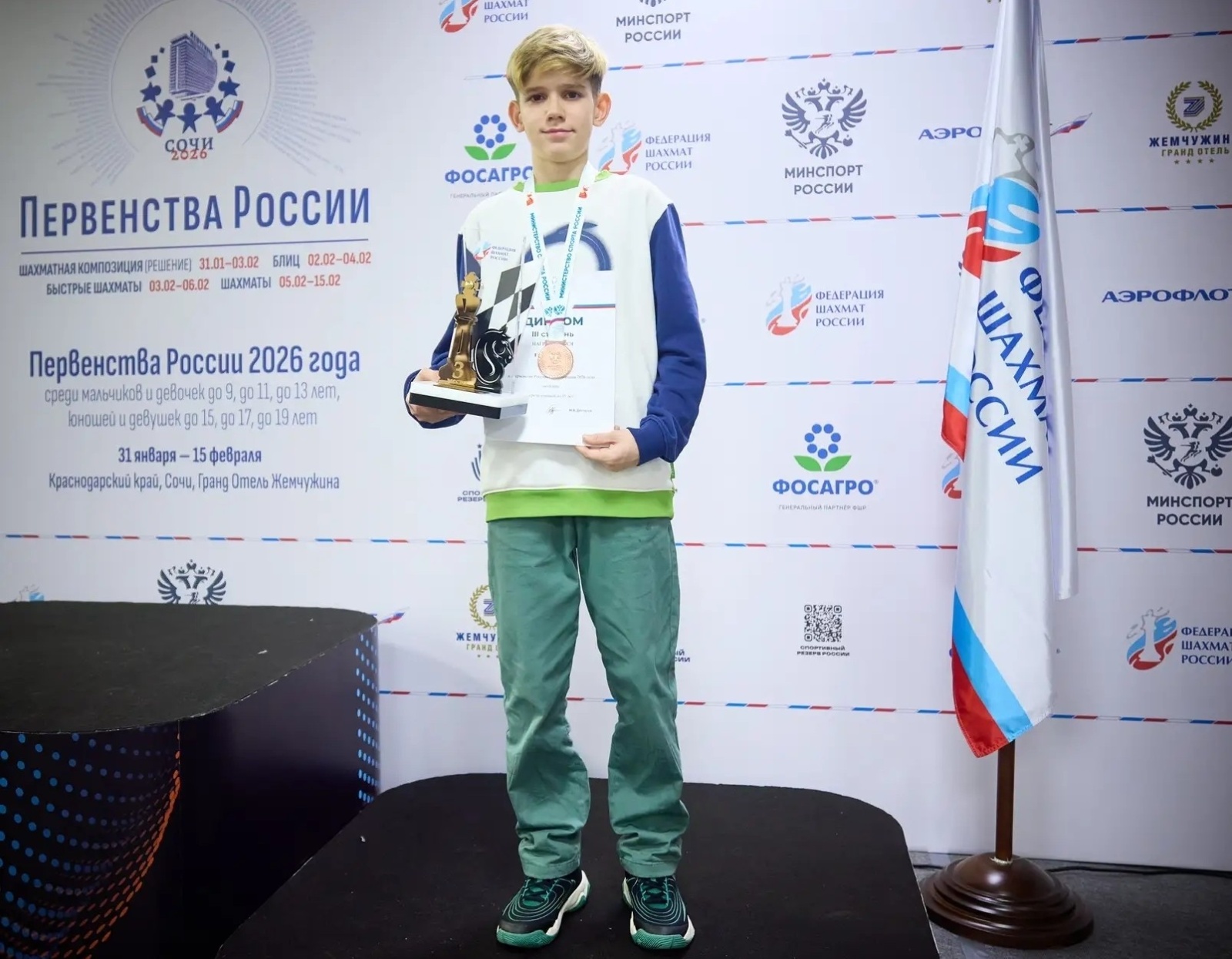 В возрастной категории среди юношей до 15 лет за награды спорили 59 шахматистов. В столь серьёзной конкуренции третье место смог занять тюменец Лев Гудованый.