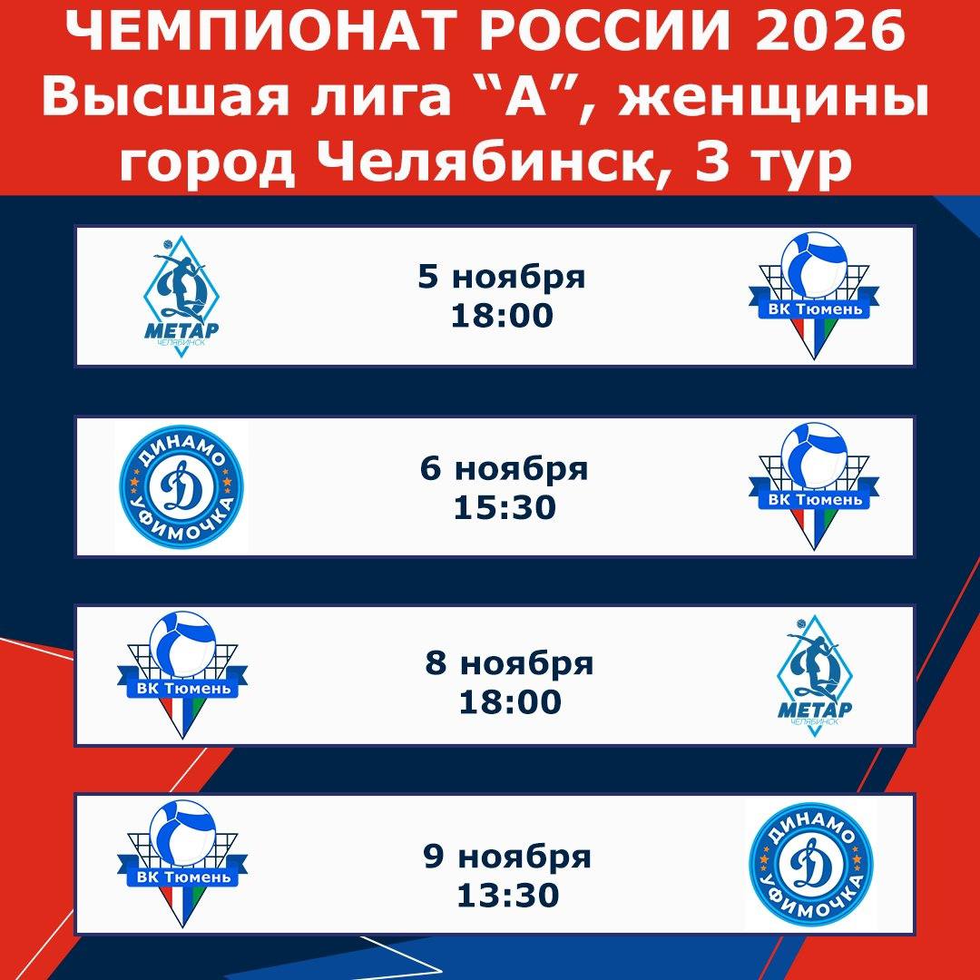 Девушки из «Тюмени» проведут их в Челябинске Подопечные Виталия Орлова дважды сыграют с хозяйками площадки из команды «Динамо-Метар-2». И у тех, и других — по одной победе и 4 балла в таблице. При этом, челябинский клуб провёл на две игры больше (8 против 6)